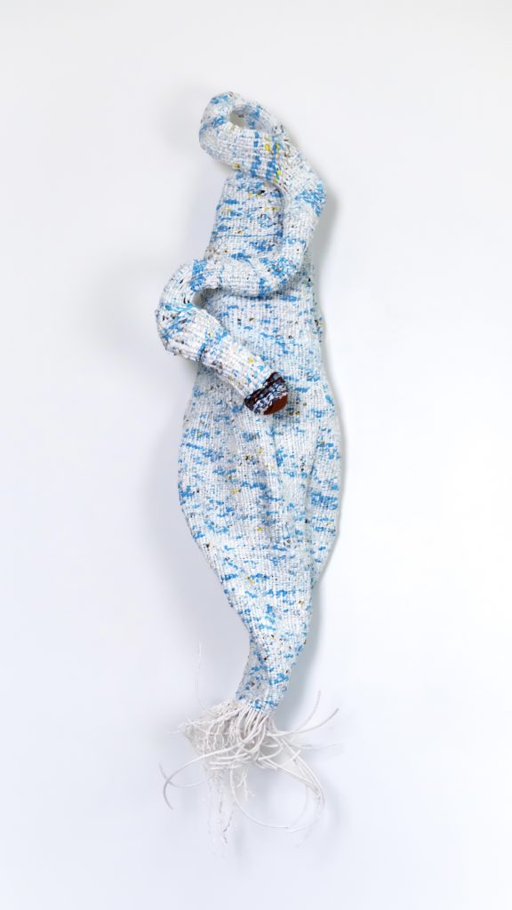 The work examines patterns of consumption, questioning what is preserved and what is discarded. By weaving synthetic waste through time-honored processes, she emphasizes the contrast between slow, deliberate making and the accelerated pace of modern life. In this context, single-use plastics are reimagined, challenging conventional ideas of value, sustainability, and permanence.