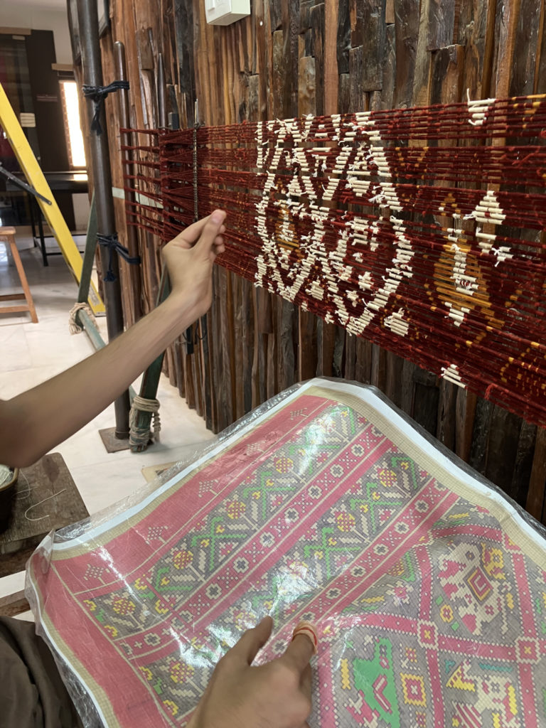 It is a tremendous privilege to feast one’s eyes not only on the obvious beauty of textiles, but also on the effort and mastery of their makers. In the latest exhibition at TAC, visitors are guaranteed not only the euphoria of saturated colors and vibrant patterns, but also a sense of 'enchantment' at the sight of such skill, patience, and dedication. Close observation of the warps and wefts of these contemporary Indian patolas is sure to impress: the painterly qualities inherent in the ikat process reveal an unmatched sensibility for pattern, color, and texture. Particularly for young people who have grown up surrounded by technology, this exhibition is not one to miss.