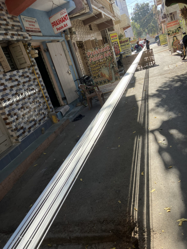 Artisanal textile communities are adjacent to the fact that agriculture is still the occupation of a majority of Indians. Modern India has had extended governmental support for textiles since its Independence from the British in 1947 and one example is the Gandhian school called Rashtriya Shala in Rajkot where traditional Patan patola-making was taught over two sessions,in the 1950s and 1970s. Moreover, it was part of a movement and belief that hitherto caste-limited knowledge could be shared and ‘democratized’ as part of a livelihood and poverty alleviation scheme. That workshop was subsequently closed and now Rajkot patola-making happens through family-based entrepreneurs, with most of the artisans actually in Surendranagar but also spread over other parts of Gujarat.