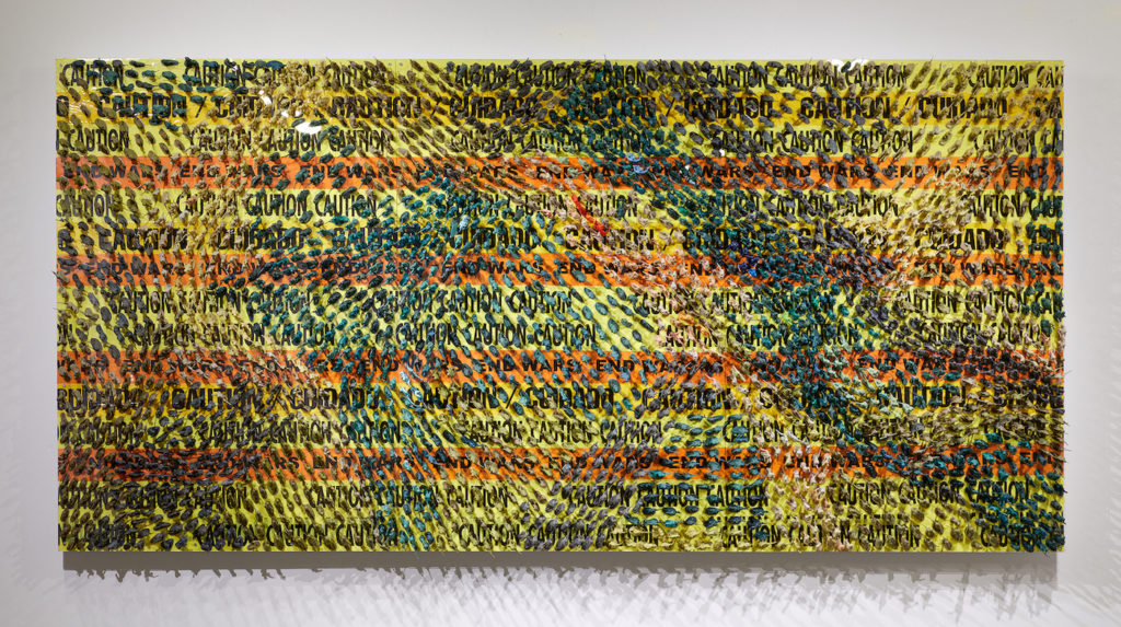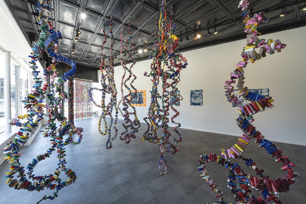 In another outdoor project, I collaborated with Martha Willette Lewis for a project titled “Thoughts & Prayers.” She created the prayer flags and I made a cross out of shotgun shells. It was a community-oriented approach where we conducted workshops around the sculpture. We had community members gather, add to the flags and have conversations.