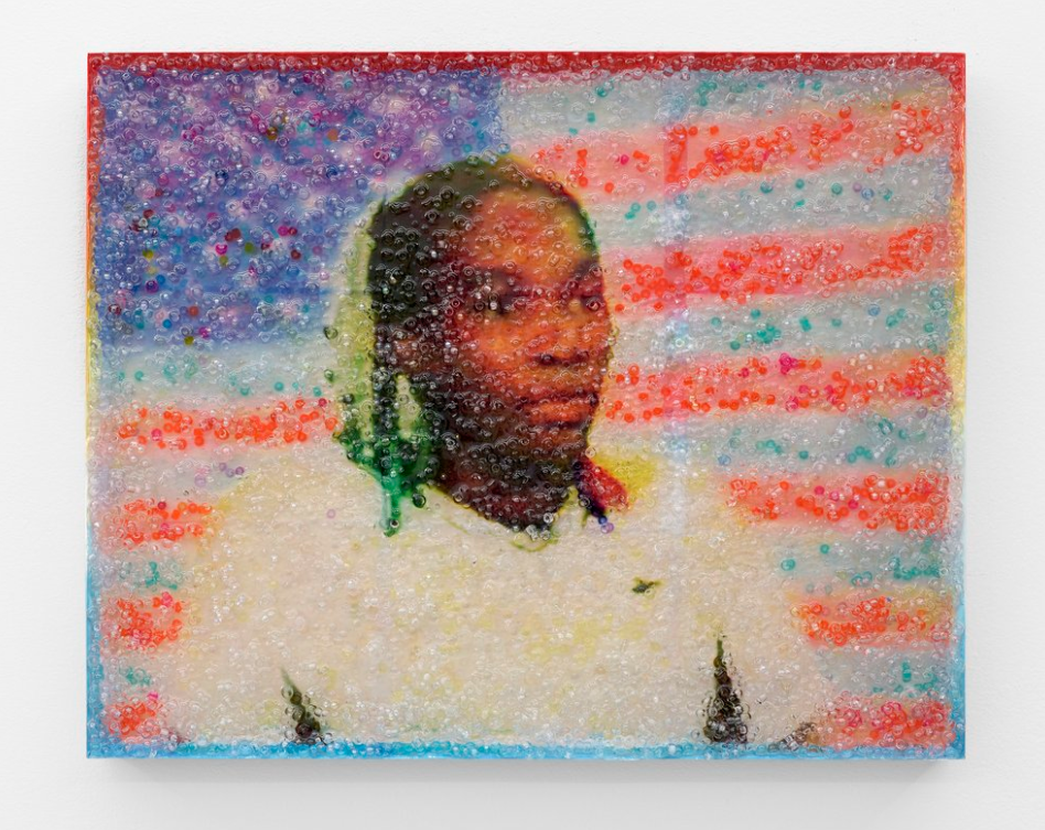 Ciara: Hi Quinci, I am excited to talk to you about your art and upcoming projects! Your work is a unique combination of many different materials carefully crafted into works on wood, colorful beaded sculptures, and experimental pieces incorporating materials like steel and synthetic hair. How do you choose what materials to use for your artworks?