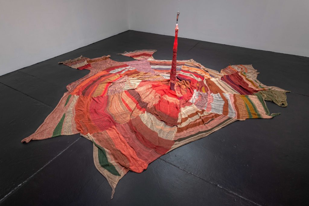 Amanda Phingbodhipakkiya is a Brooklyn-based transdisciplinary artist whose work spans textiles, sculpture, painting, and installation. Working through precarious amalgamations that hold ruptured inheritances, she creates sites of collective reckoning rooted in her Thai and Indonesian heritage. Phingbodhipakkiya employs materials such as hand-knotted rope, reclaimed textiles, talismans, and vessels to investigate themes of absence, displacement, and inherited trauma—transforming them into expressions of resilience, ritual, and repair. Her practice foregrounds the embodied knowledge of immigrant communities and the often-invisible labor of women, constructing liminal spaces where memory, touch, and materiality intersect.